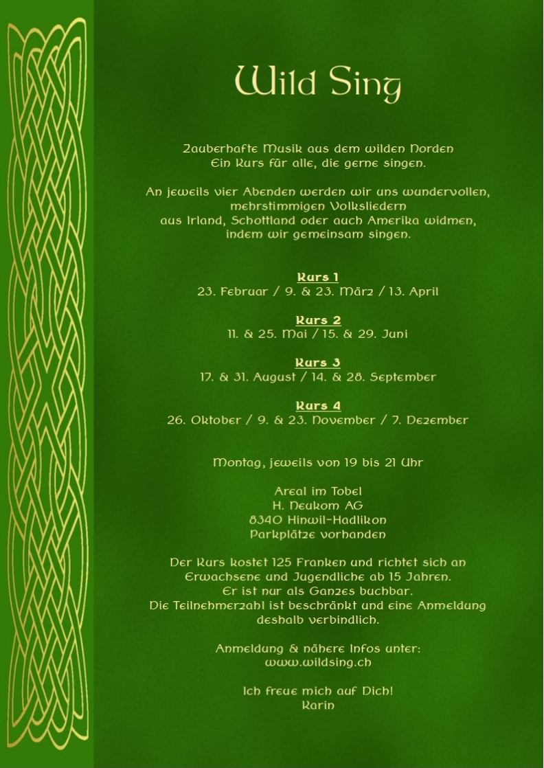 Am Ende des Jahres werden wir in einem kleinen Konzert für unsere Liebsten singen. Mein Wunsch ist es, ein Abend zum Zuhören, Entspannen und Mitsingen zu gestalten.